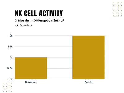 Eftir þrjá mánuði leiddi rannsóknin í ljós tvöfalda aukningu á virkni NK frumna við inntöku á 1.000 mg af Setria®. (NK frumur styðja ónæmisheilbrigði)..