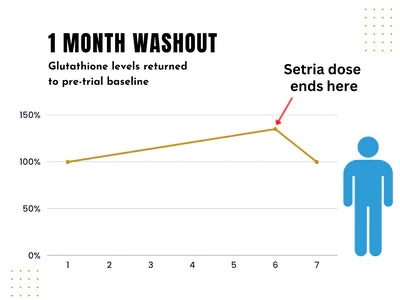 1 mánuði eftir að fæðubótarefna inntöku lauk fór glútaþíonmagn að fara aftur í sömu gildi og fyrir rannsóknina. Setria® glútaþíon hefur ekki skaðleg áhrif á eðlilega framleiðslu líkamans á glútaþíoni.